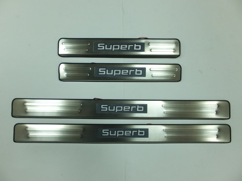 Накладки на дверные пороги с логотипом и LED подсветкой, нерж.